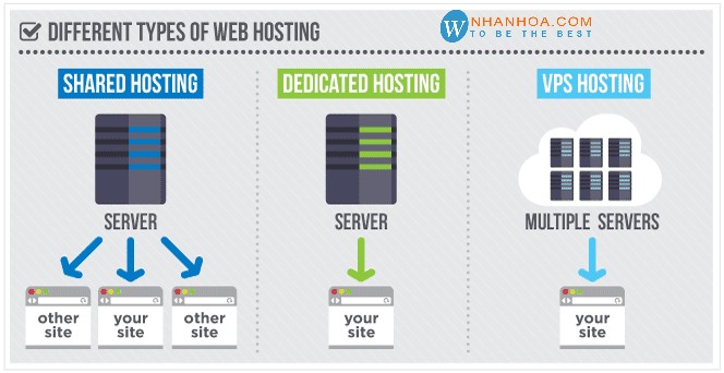 Tốt nhất, nên bắt đầu với gói lưu trữ đơn giản nhất. Khi trang web phát triển, thu hút nhiều lượt truy cập hơn, bạn có thể nâng cấp lên gói cao cấp hơn. Bạn có thể tham khảo giá hosting của Nhân Hòa để hiểu rõ hơn về các loại lưu trữ và chi phí. Hãy cùng tìm hiểu một số loại lưu trữ phổ biến nhất hiện nay.